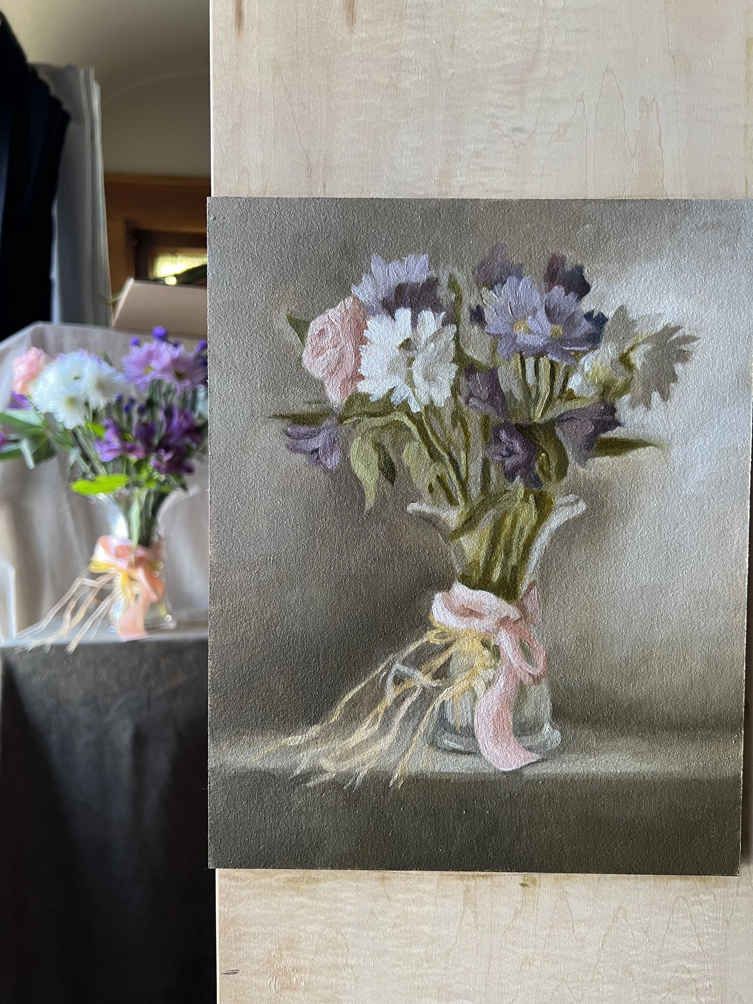 I painted this bouquet of flowers from a shadow box I set up in my living room.